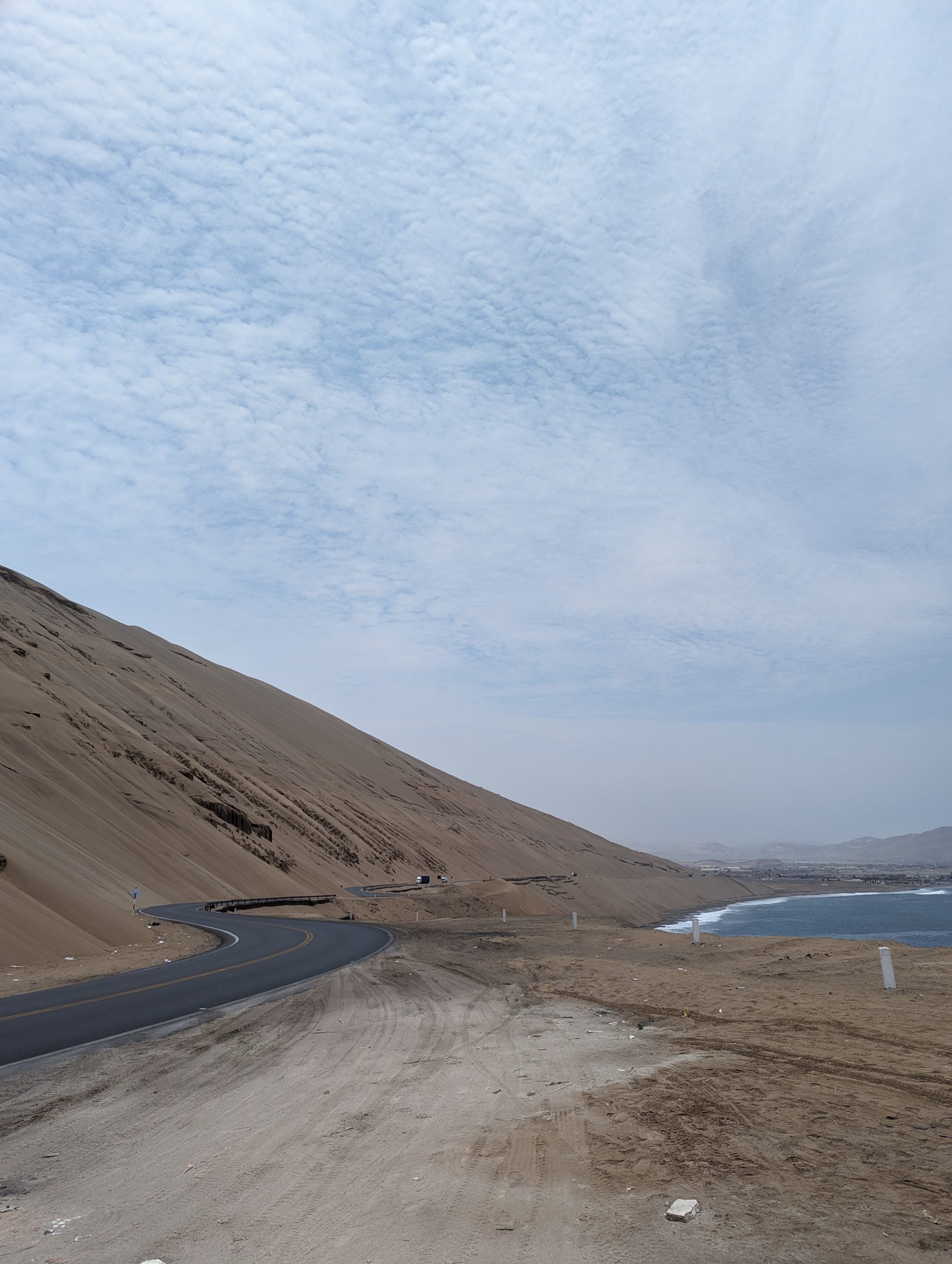 With all we wanted to do in Lima done, we set off to leave the city. City traffic is just not nice, it was not in Europe and it is even less here, but we managed. The first really cool stretch of road after Lima was the 1NA, which directly runs along the coast line, and is officially only usuable by trucks, but they made an exception for us.
