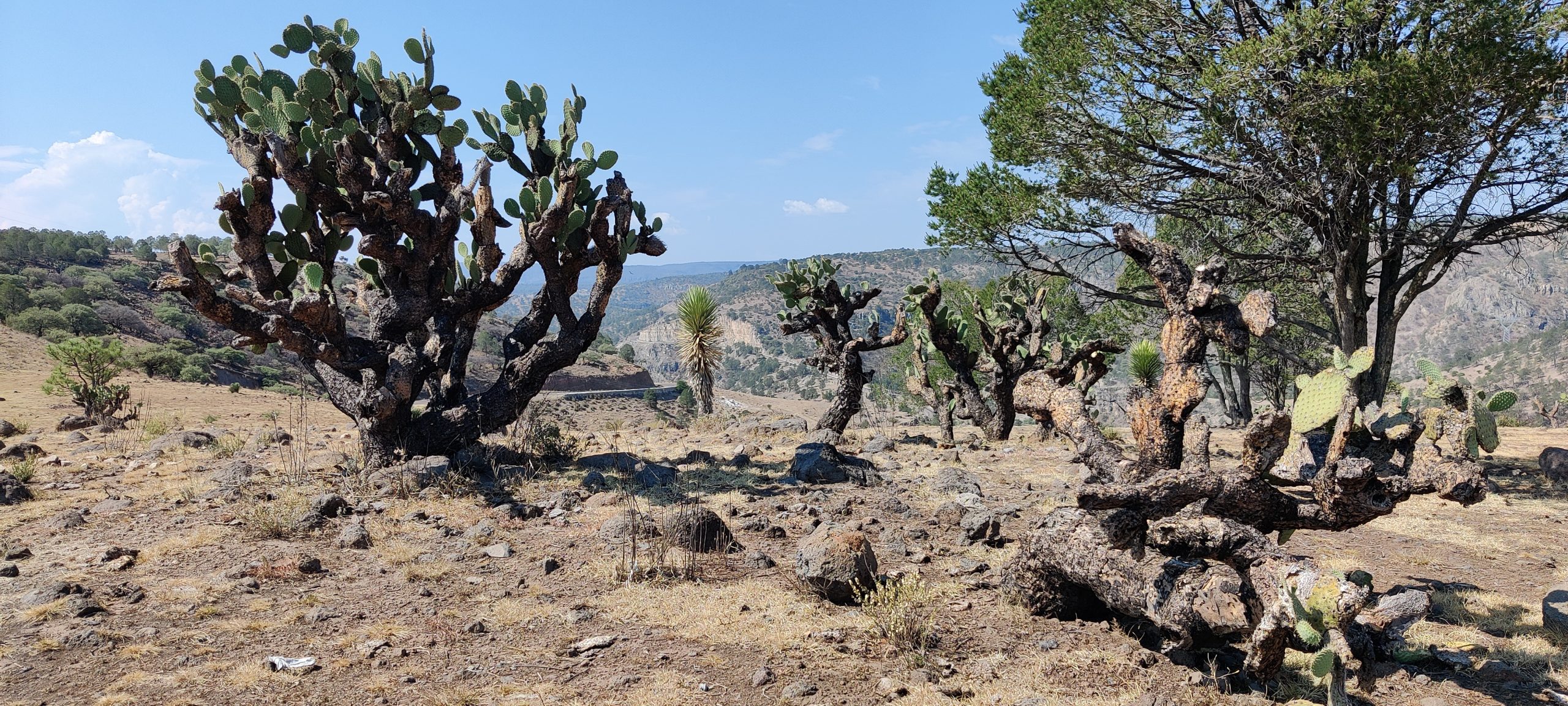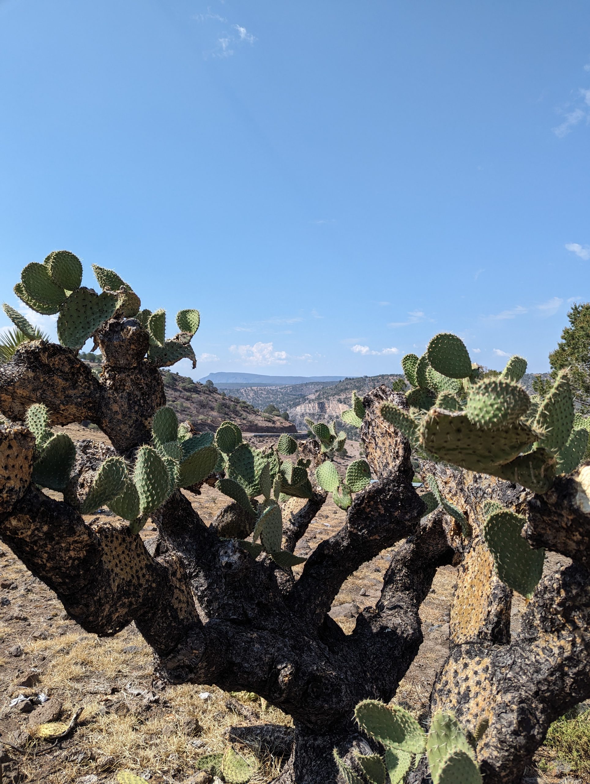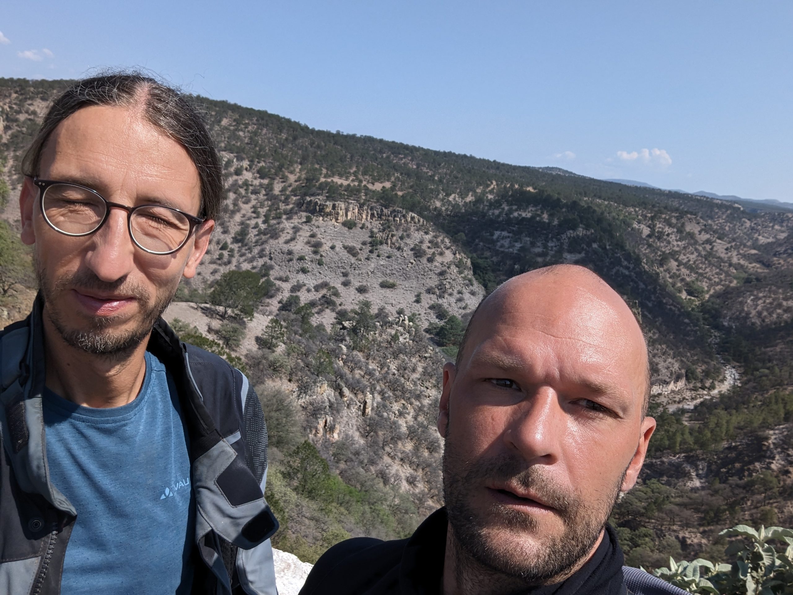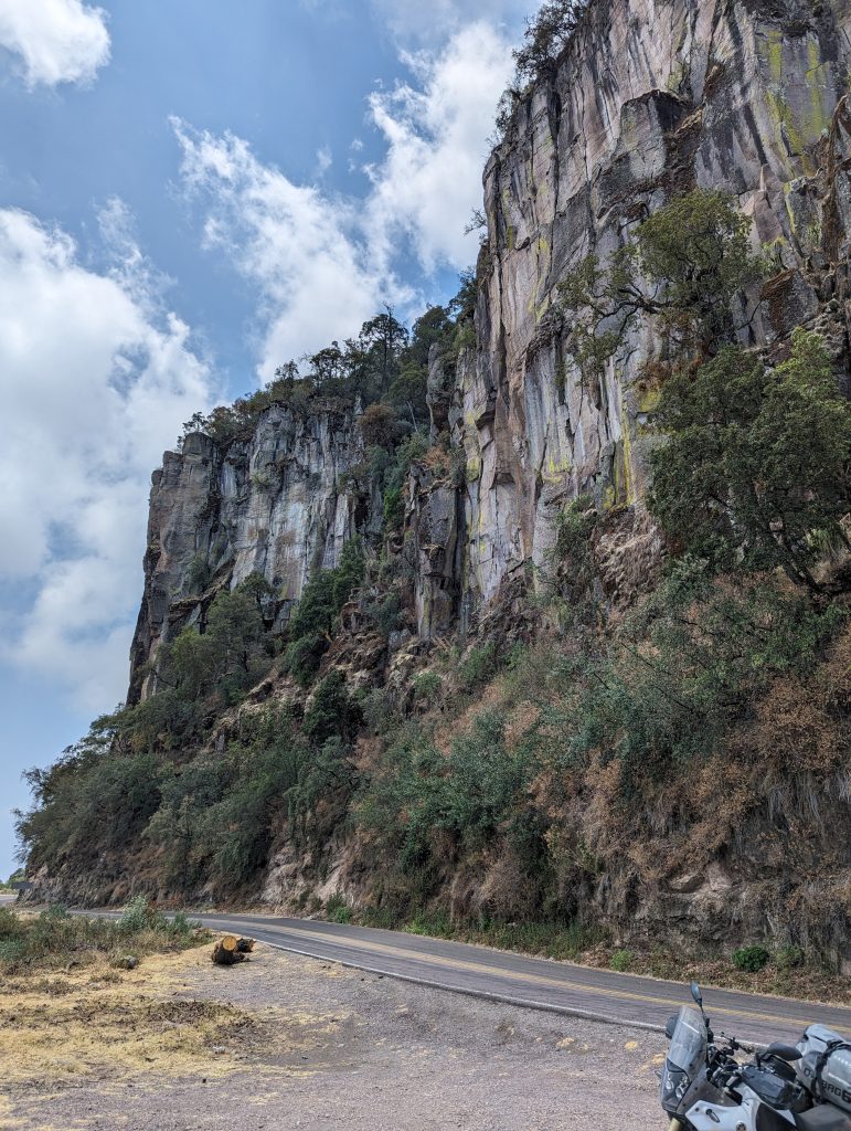 We are now back at elevation and the temperatures dropped, significantly, from mid forties to mid/high thirties. And we determined that desert heat is if 38 something degrees feel somewhat cool again. The landscape is beautiful. Cacti, Palm trees, other trees and dry grass land, and you have hills all around you. I have said it before, some of the roads we have ridden in Mexico were just perfect, bendy, great landscape, low traffic, just like you want it as a motorcycle rider. However little did we know that THE ROAD is still ahead of us. Durango to Concordia – MEX 40 – not to be mistaken by MEX 40D. Now that is a road, not knowing what to do first watch the passing by landscape, focus on the road or just stand still and take it all in at once.