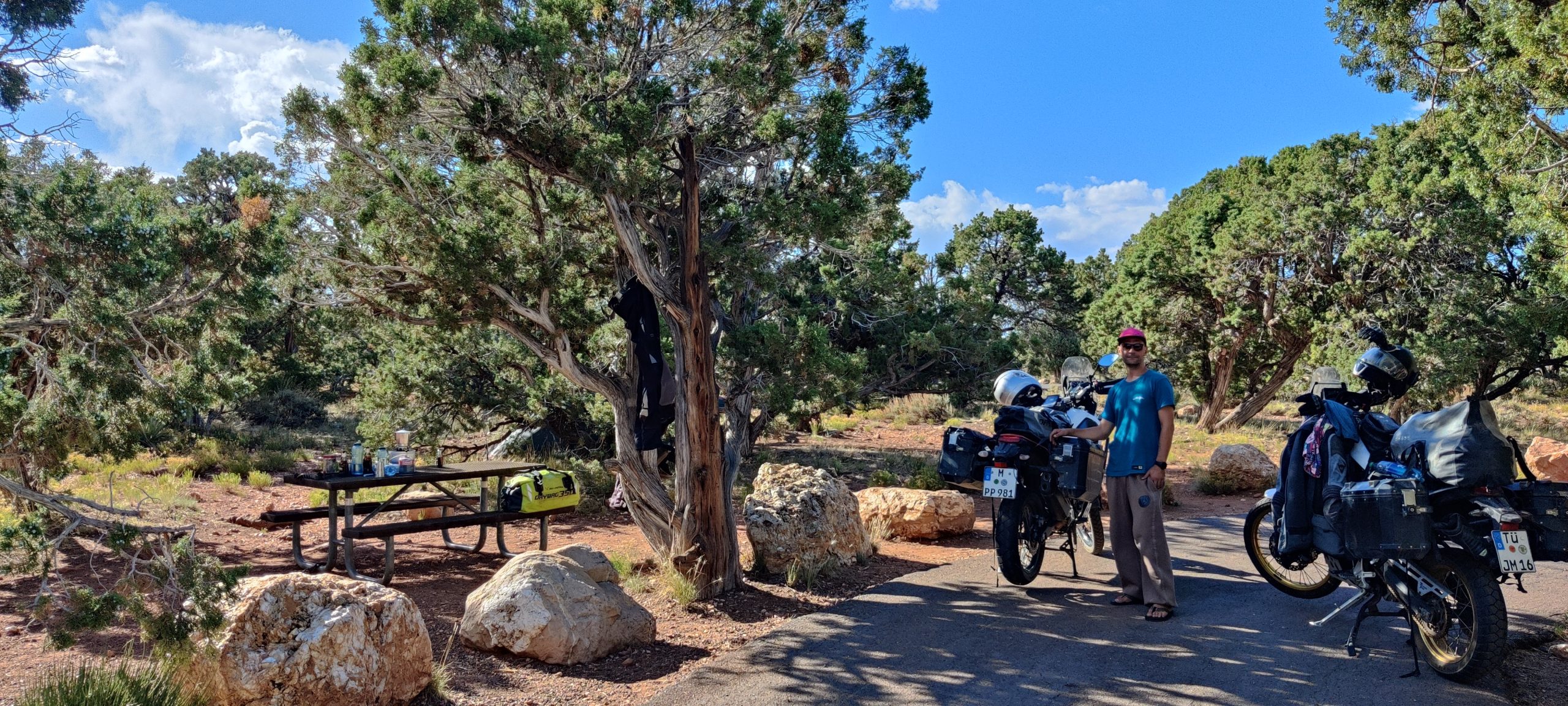 And then we went to the Grand Canyon. The ride out of Sedona was spectacular, and as well the arrival in the Desert View Campground, which Stefan was able to book just this morning. We are now five days in the US, and the ride has been a spectacular one. Don´t get me wrong nothing (thus far) rivals Patagonia and the Atacama, but yeah this is pretty close, and we have just scratched the surface of our stay in North America.
