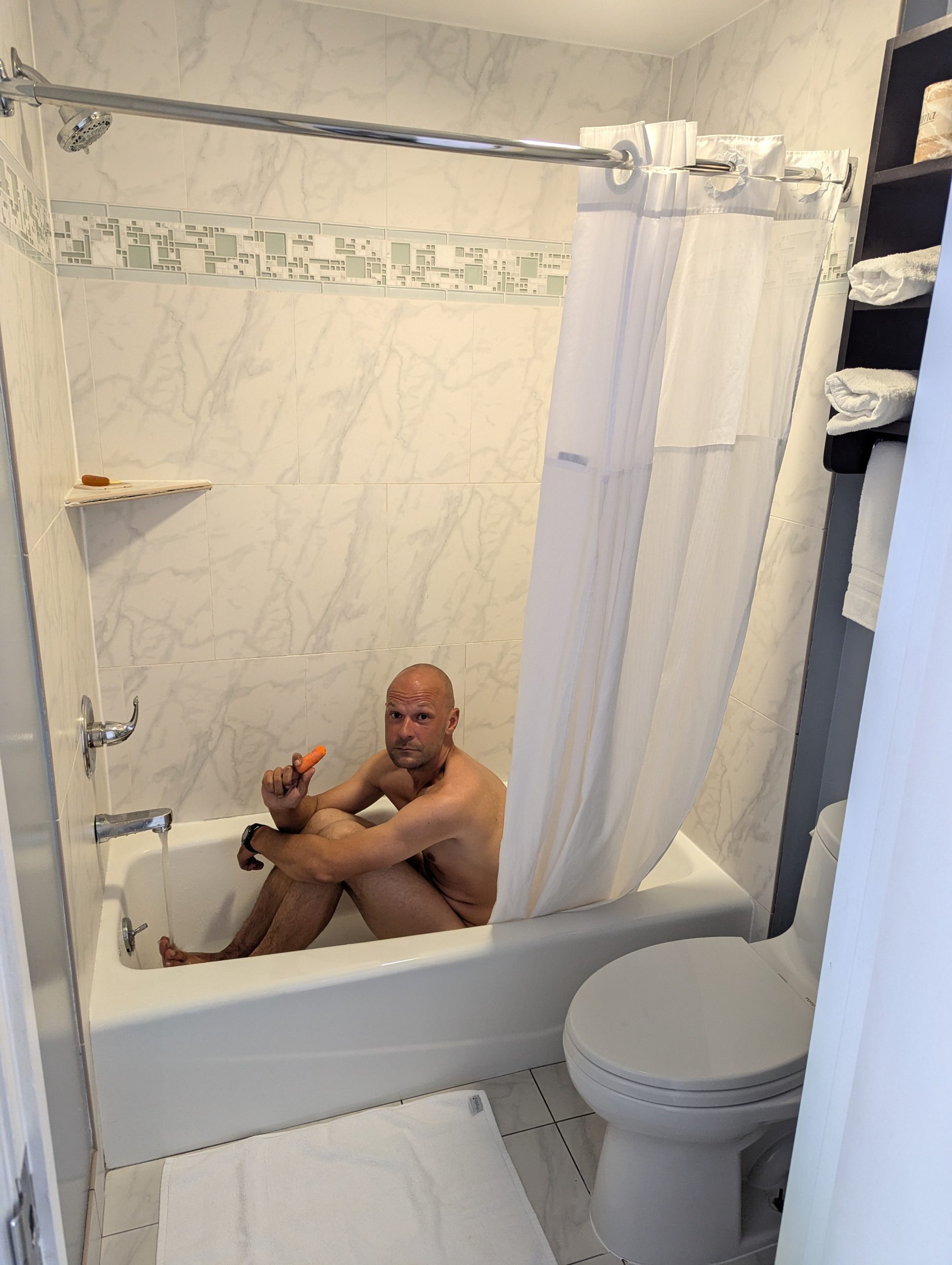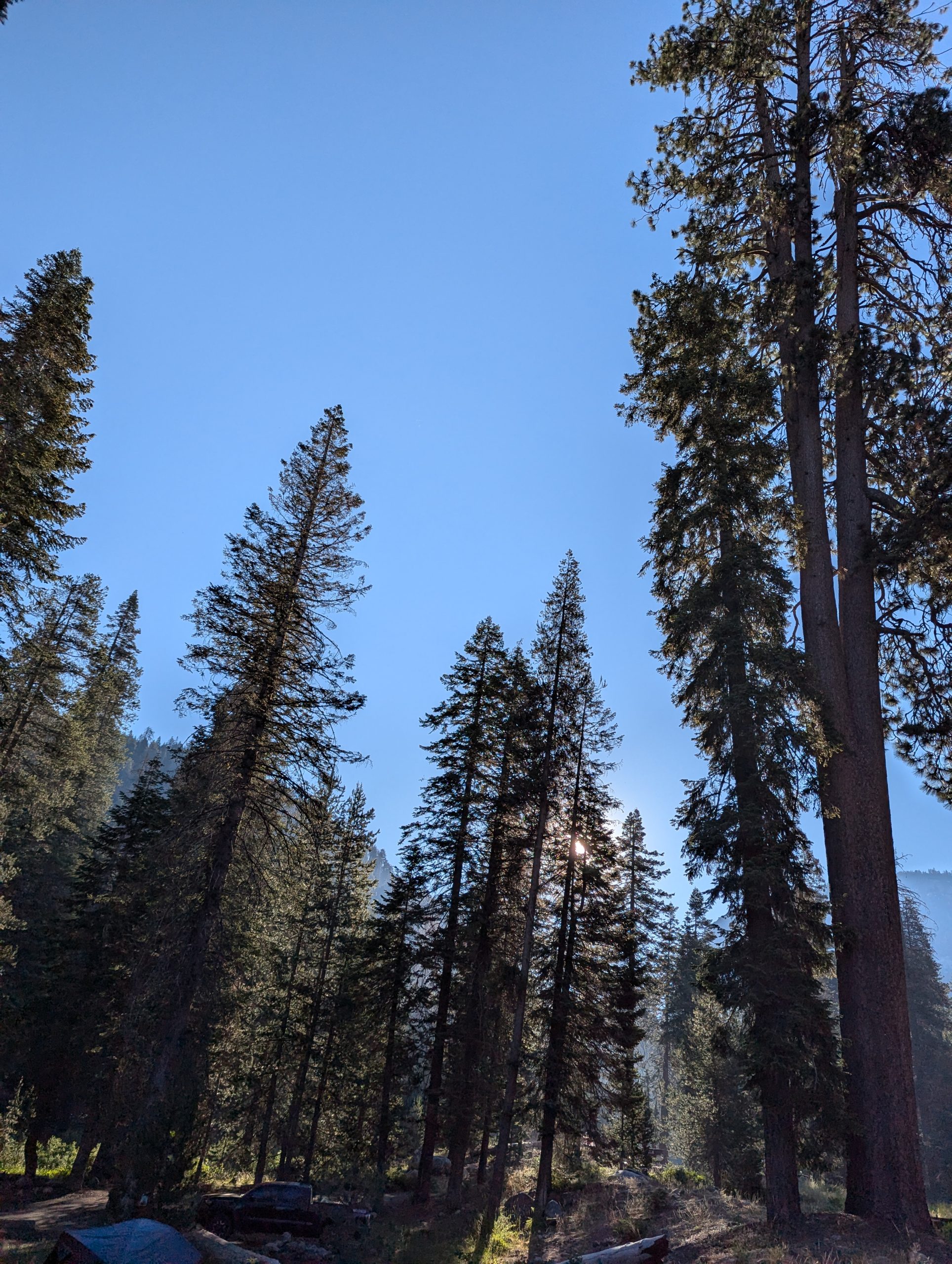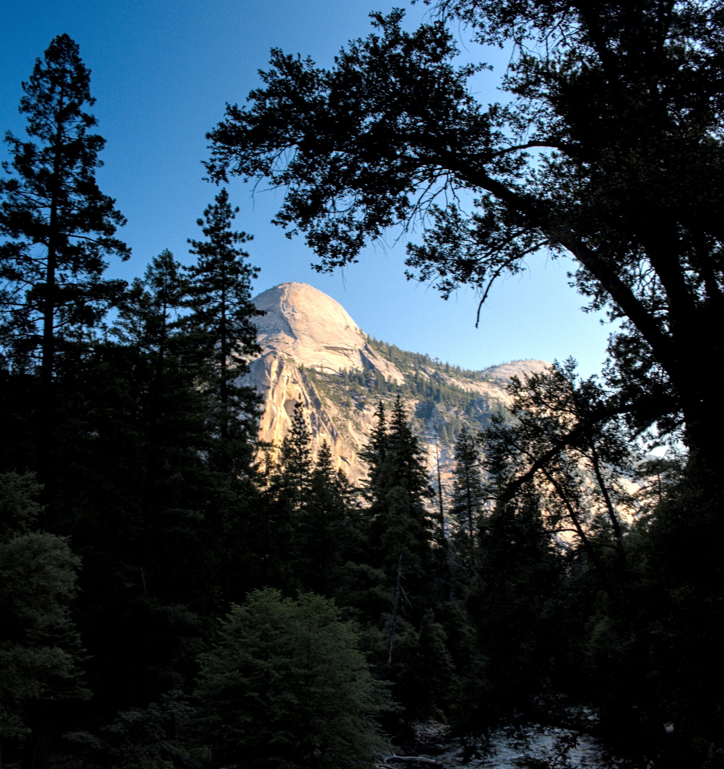 So you get into Yosemite, and at least in my head there were the pictures of El Capitan, the Half Dome at the far end. Pictures I got from “Alex Honnolds – Free Solo” and “Huber Buam – Speed”. So i was a bit disappointed by the 30 miles after the entrance, that it took to actually get to Yosemite valley. But man the tunnel view, so worth it. However it was late in the day, the ride was long and no tent was put up yet. So Stefan definitely did not enjoy that view as much as I did. In addition he is not necessarily a fan of blank rock as much as I am. We were camping at the Upper Pine Campground which is at the far end of the valley, right to the entry of the Misty and John Muir Trail. A little creek flowing not to far from the campground. Just thinking about that spot still sends shivers down my spine. The cool down phase in the river was really enjoyable.