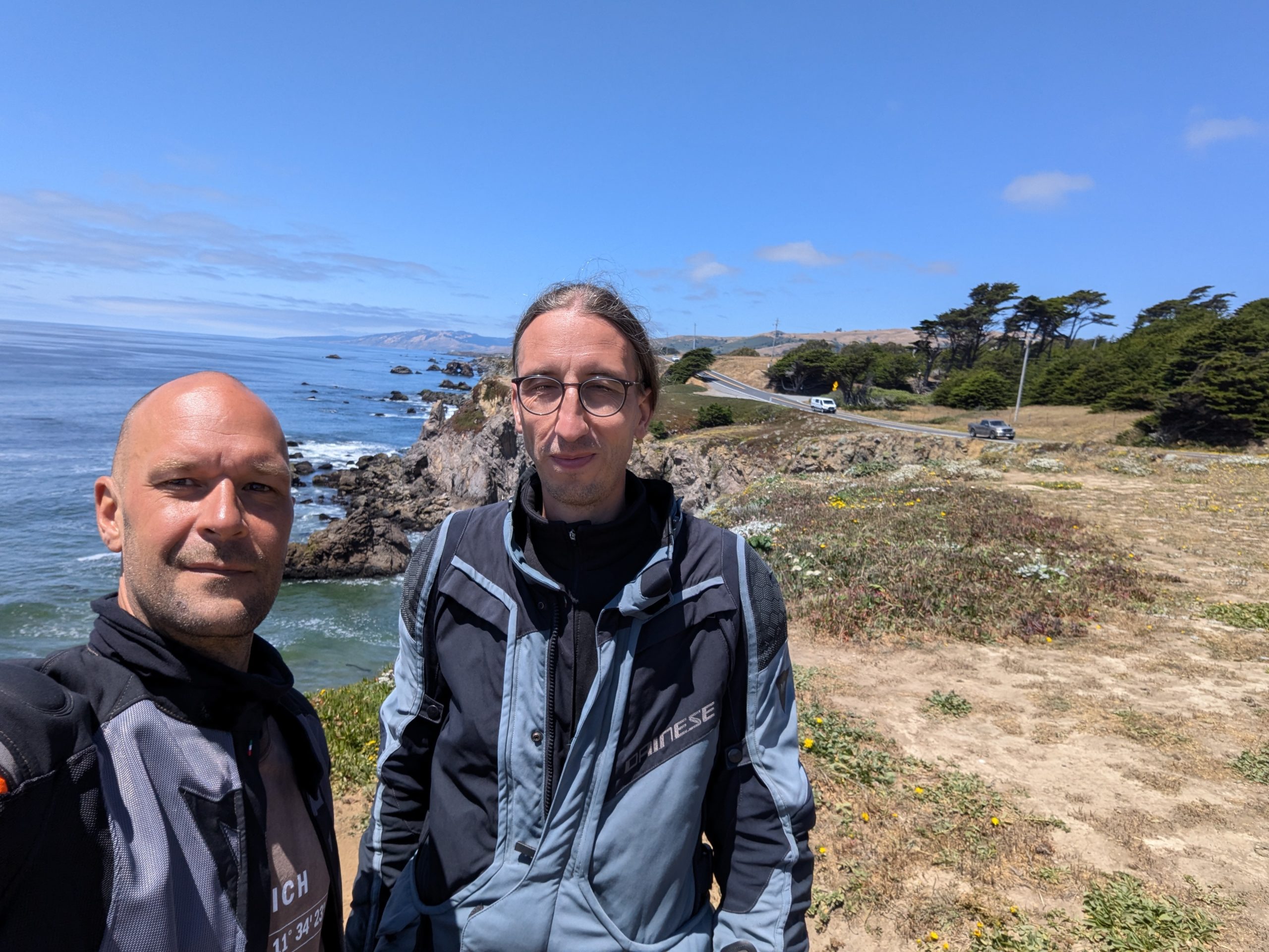 One thing we needed to get done while in San Francisco was my tire situation. We found a company called cycle gear, which seems to be the equivalent of the German brand Louis. There we can order tires online – still not the Pirelli, as they currently have a shortage of the back tire, but well the Michelin Anakee was available – however as the idiot did abandon his home in Munich, and is now “living” with his parents again, naturally i gave my new home address as the billing address. Well i forgot to tell the bank about it, and it took me three tries and a shower brainwave of Stefan´s to get it right. The disadvantage of Cycle Gear is, that they do not take your bike remove the wheels, change the tires and hand you the bike back. So you have to remove the wheels, which is not a problem if you have a home and a garage and so on. In addition, Cycle Gear says on their website, that it can take up to 48 hrs to receive the wheels back. Not an option at all. so i started calling the store in Santa Rosa, if they could just fit us in, while we take of the wheels in their parking lot. No – the process says – blablabla. Alright let´s see the next store, Redding and what do you know, very helpful, just a mention of how unusual that is, but yeah no problem, we will make that work. Well now Redding became part of our itinerary. While the tires are being shipped to Redding (which I do find rather cool, that you can send an online purchased item to a store … I know this has been around for some time, i just never had the necessity for it, until now … so yeah cool), we head of to ride the Pacific Coast Highway.
