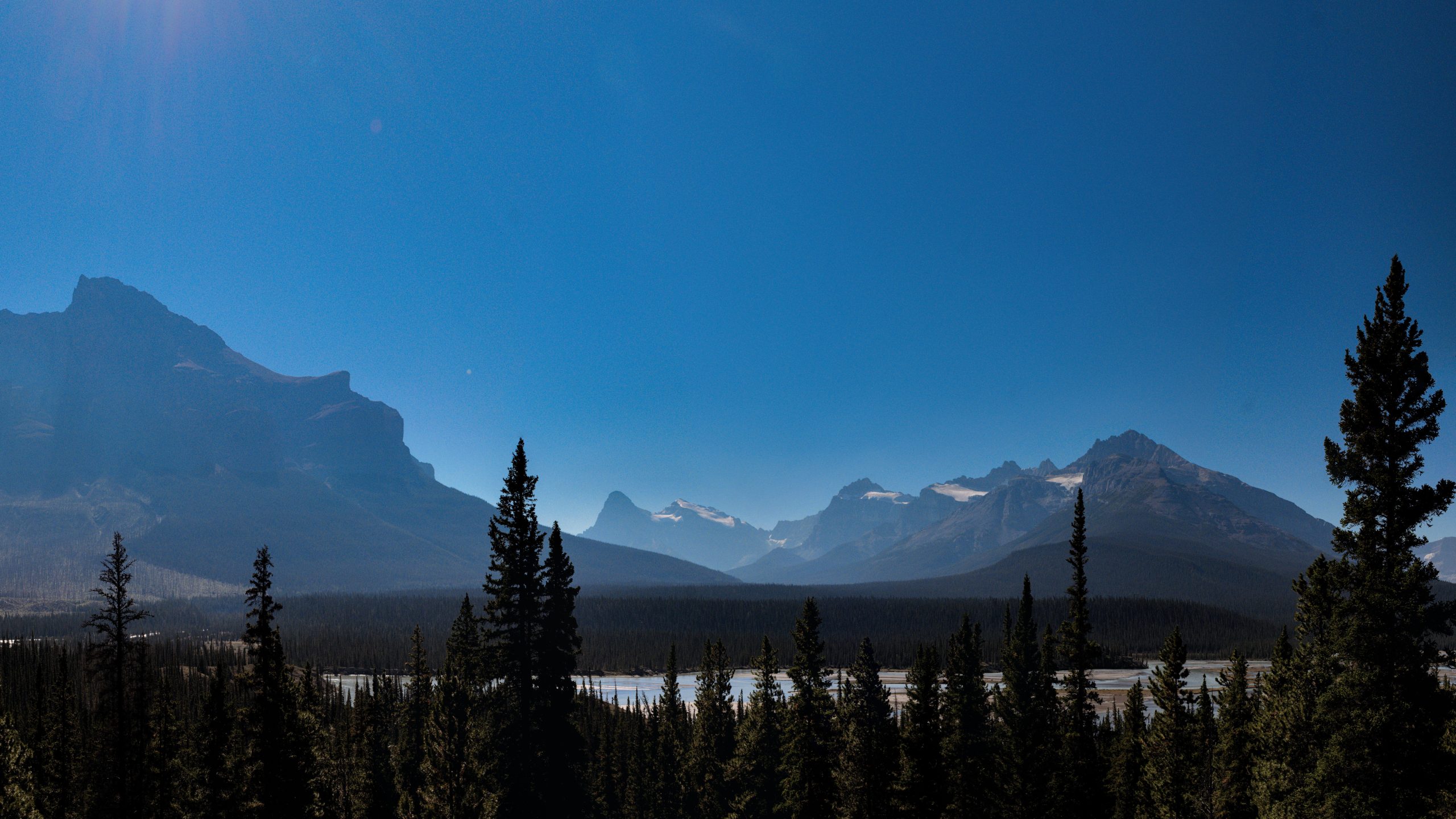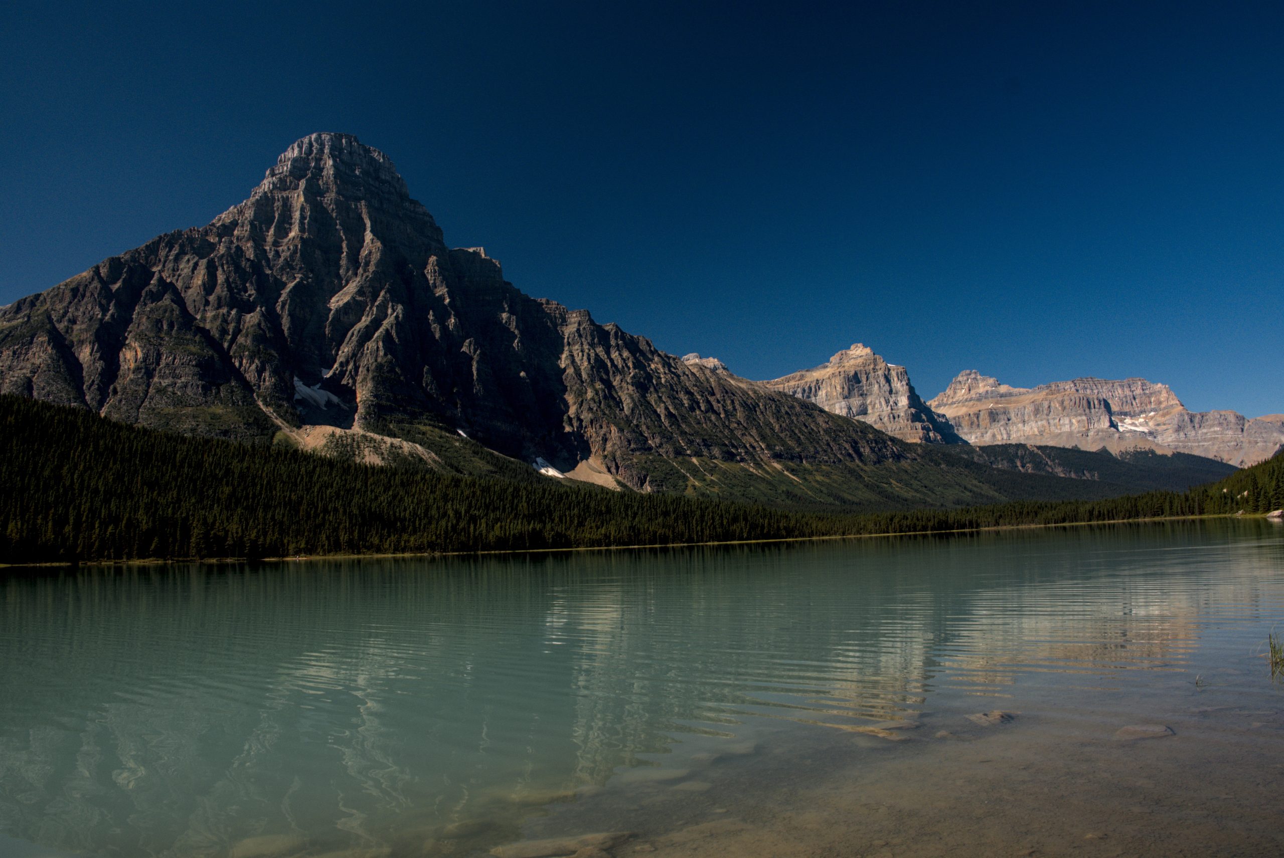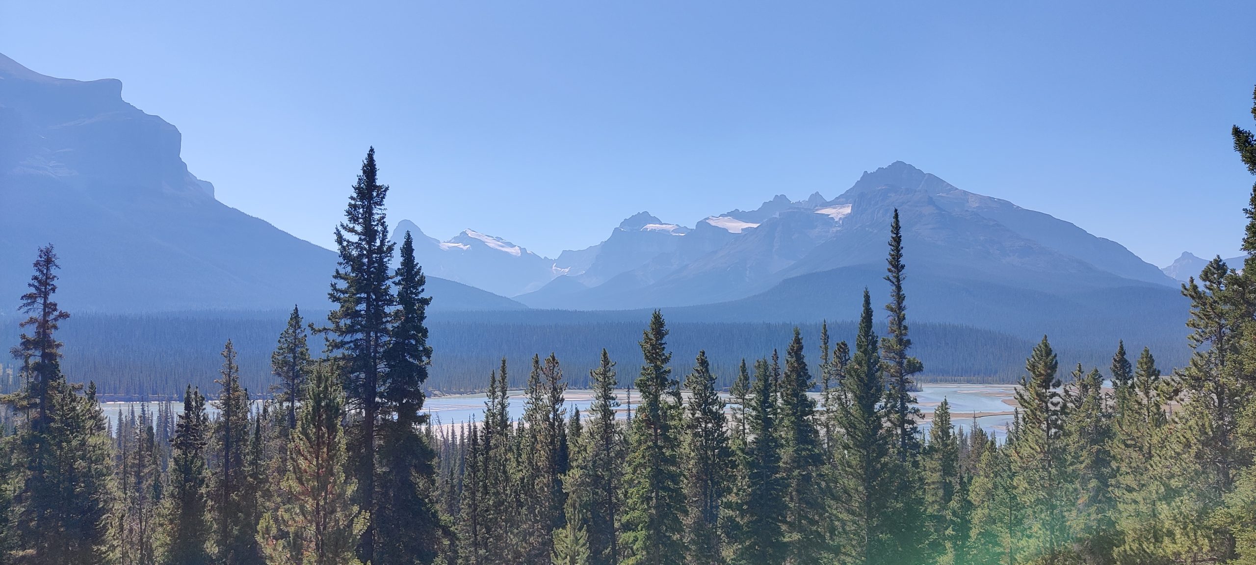 while the day started rather boring – highway 16 towards west, and then some smaller back country roads towards Brazeau Reservoir – it got much much better after the reservoir. Once we turned on Hwy 11 you started to see the Rocky Mountains. First only glimpses, but after a while they were in full view.
