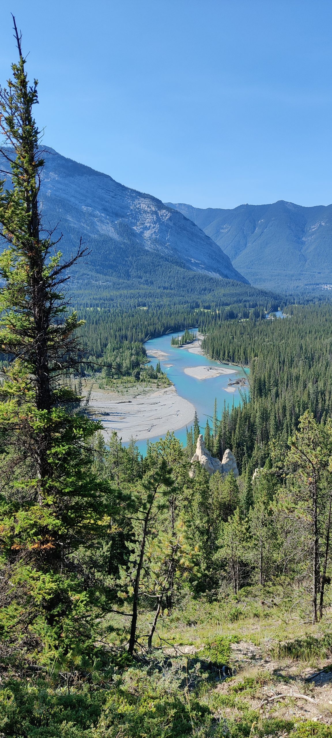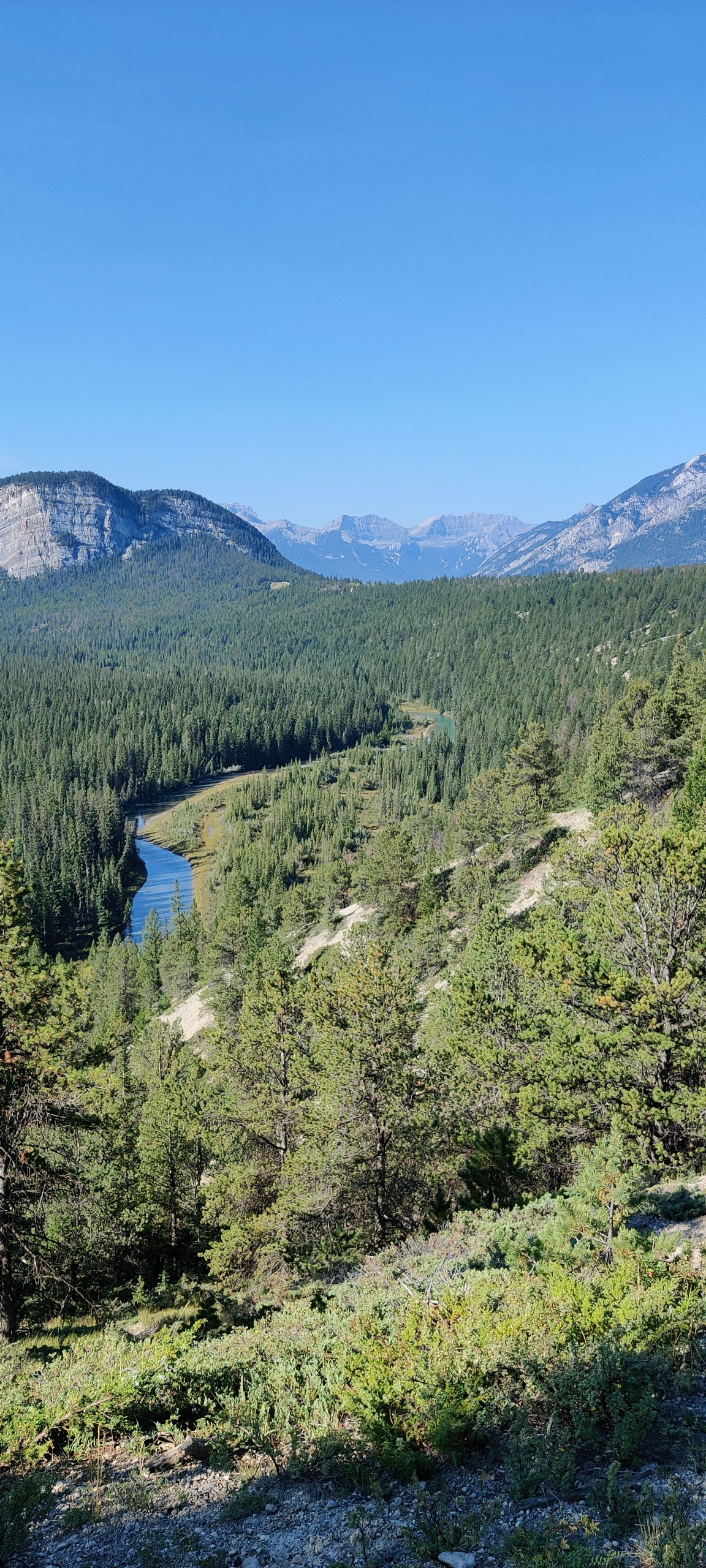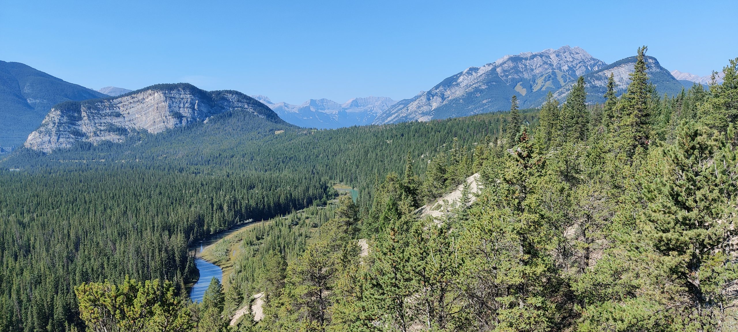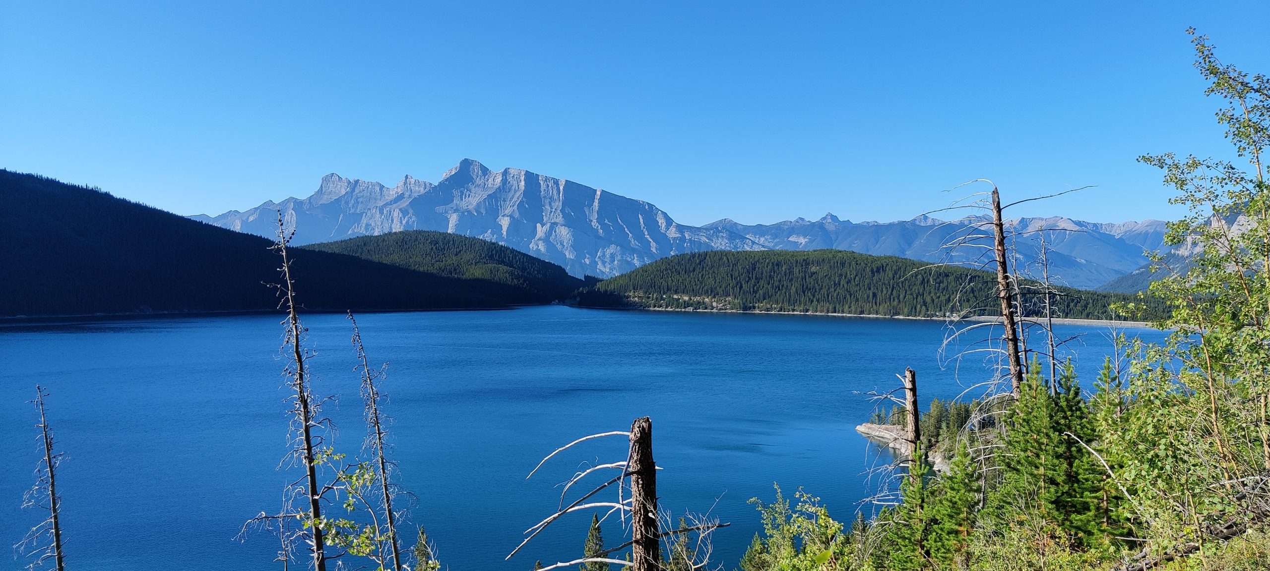 Today is the day, after quite along time we are going hiking again and while both of us were looking forward to it the 0530 am alarm let us doubt our life choices – somewhat. anyway beautiful starry sky and two cups of coffee made up for it. Currently sunrise is at about 0700 am. We are ready and i stead of taking the bus to the city, just to transfer out of the city to Lake Minnewanka, we opted to take a 3km walk to the nearest bus stop. Arrived at the lake at about 0800 am and started walking. After 2.5 km we came to the junction were the path leads to Mt. Aylmer and here we were greeted with the first warning sign, bear activity. Yeah what else is new. Bear activity has been a constant since we started camping in California. Second sign, some 100 m further, some more attention was spent. You should only be hiking in groups of at least 4 persons spread apart approximately 9 m. G no, it is just the two of us, and even if you count myself double, weight compared to Stefan´s, we still would not be four persons. On wards we march. Sign three and four in close proximity, persistent are the not? Bear spray is a must, which have never bothered to buy oh yes and there is a up to 25’000$CAD fine. It took us another kilometer to discuss and do the responsible thing of turning around. Well in the end we still walked 21,6 km and it was quite nice, but it was not what we wanted to do. So hiking in berry season has to be planned way better. Well still some national parks to come. Once we reached Banff, we booked our self an accommodation for Calgary. Ah and i have to go to the shop tomorrow as my front suspension needs a closer look. And maybe my front fender will arrive while i am there. Regardless we will stay till Wednesday.