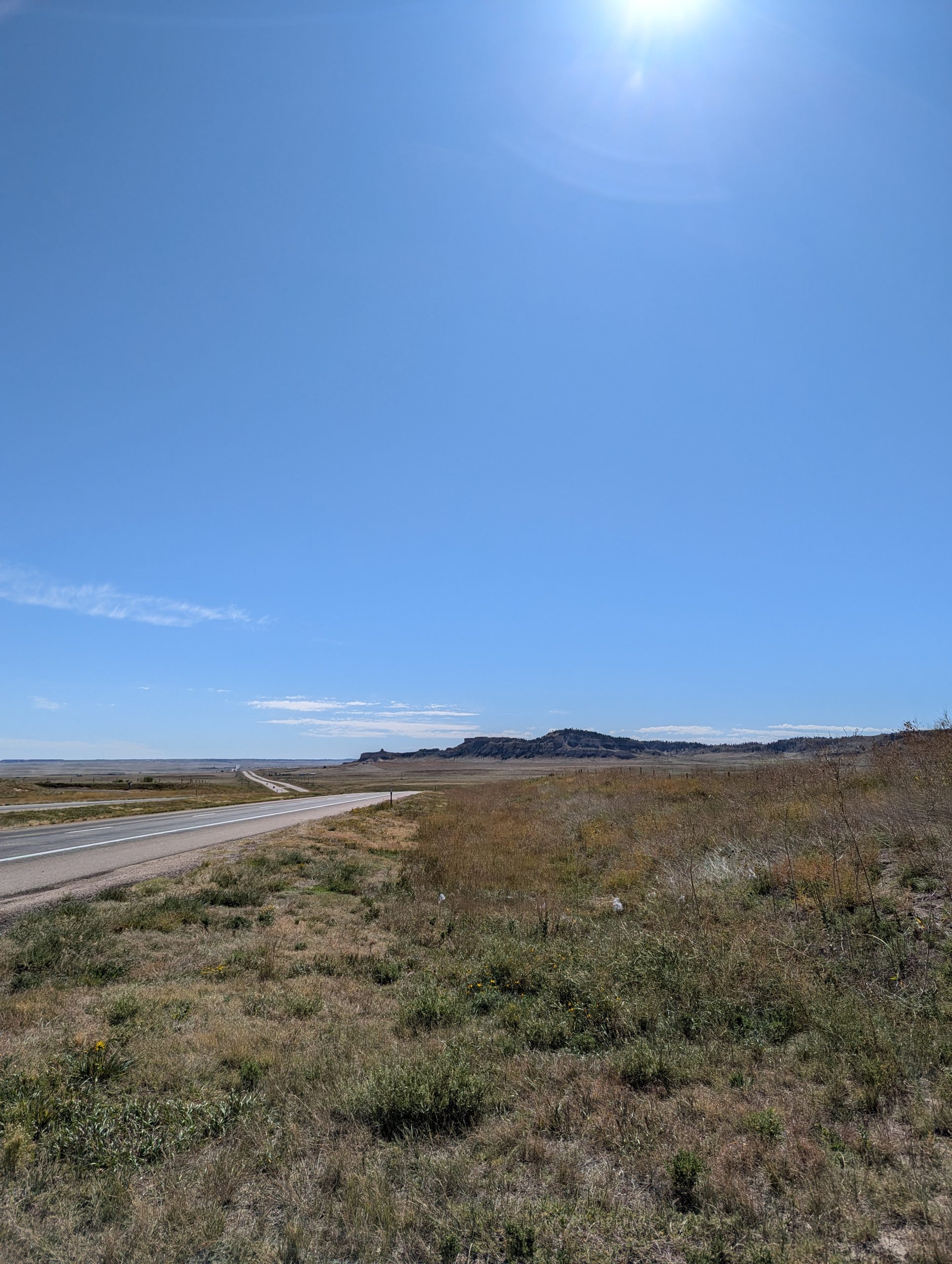 Out of the Rockies and onto the flat lands, still at an elevation of 1800 m. Interestingly in both Utah and Colorado we did not see any windmills, but right after the state line back into Wyoming there was a rather huge windpark. Our initial stop for the night was supposed to be Scottsbluff, but availability of accommodation was low and the city did not appeal to us. So we decided to move onwards toward Chadron in Nebraska. Good choice as there are now again little hills and interesting landscape while the roads are mostly straights. In Chadron itself we found a nice little restaurant/bar called “the ridge” which when we entered had an event for an independent senate candidate. And the location was packed with independents and democrats. It seems like Chadron might be an outlier in an otherwise red state.
