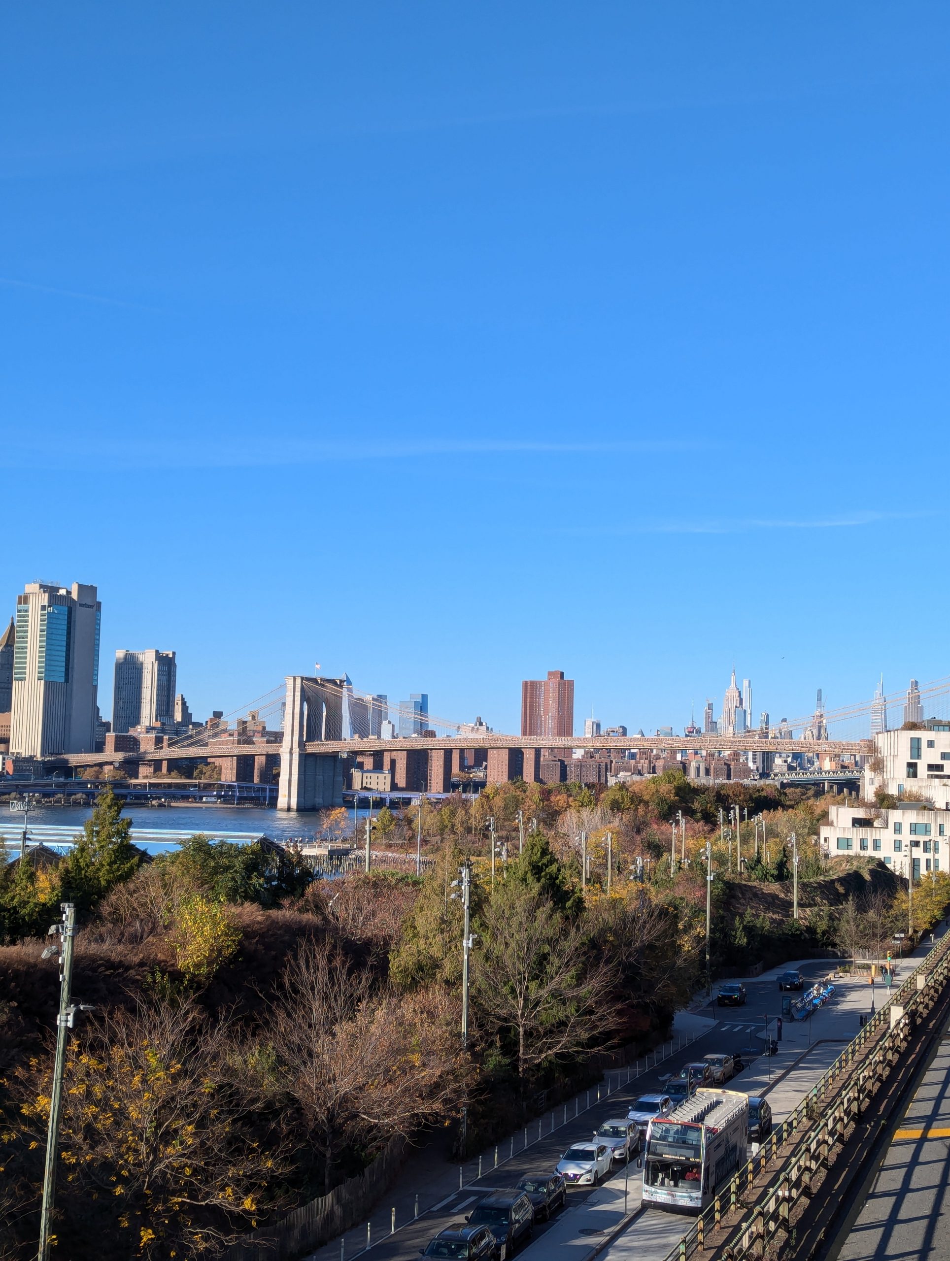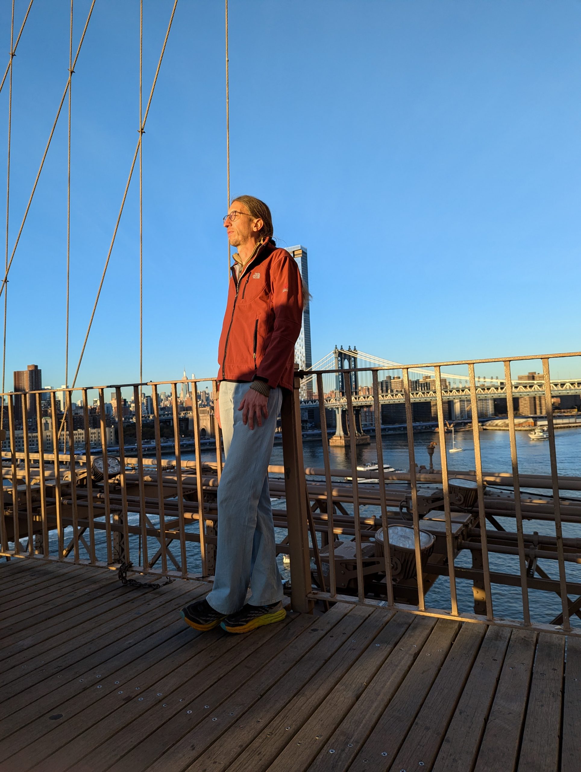 40 km New York morning traffic, and we planned a detour via the Brooklyn Bridge. Well took almost half an hour for the 10 km to Brooklyn Bridge but it was worth it. We did use two lanes of the bridge, slightly blocking it, but no honking and the following cars actually kept their distance, that was a pretty cool moment. The rest down to the shipping center was uneventful and fast. Drop off itself was unpretentious, and somewhat anticlimactic, let’s see if and when we will see them again. Went back to the hotel and after a little nap started the sightseeing, as usual walking most of it. Roosevelt Island, Central Park, Times Square Upper East Side.