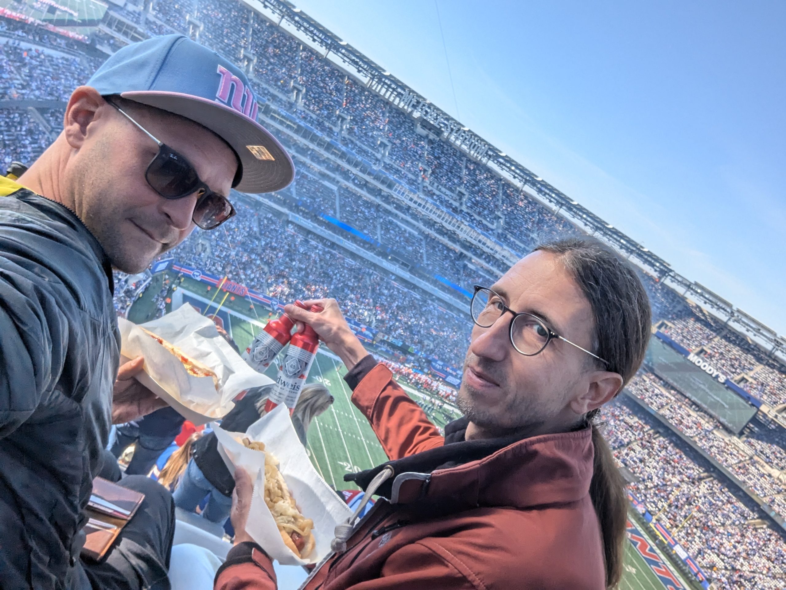 Champaign breakfast in bed, i mean we really had an absolute amazing view of Manhattan´s skyline, and afterwards we went to the New York Giants vs. Washington Commanders. It has been an experience, but all in all i d rather go to a soccer game then american football again. With all the little breaks in between that feels more like a cricket game.