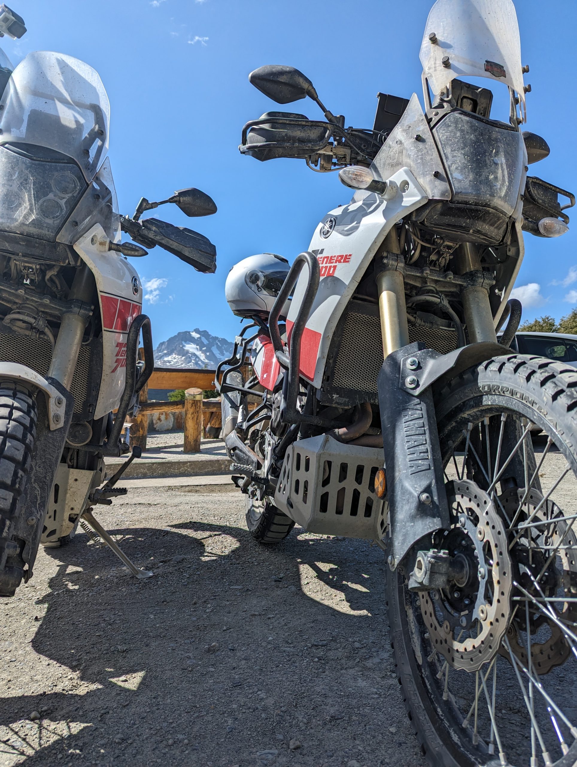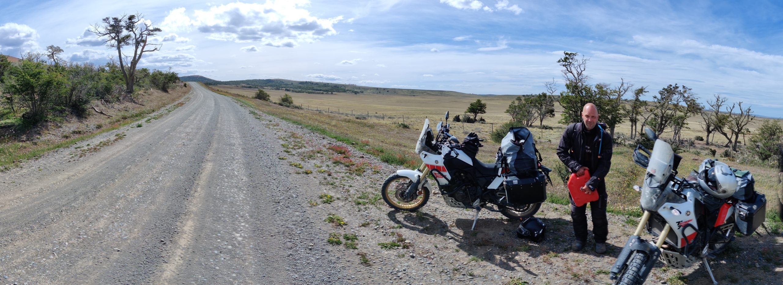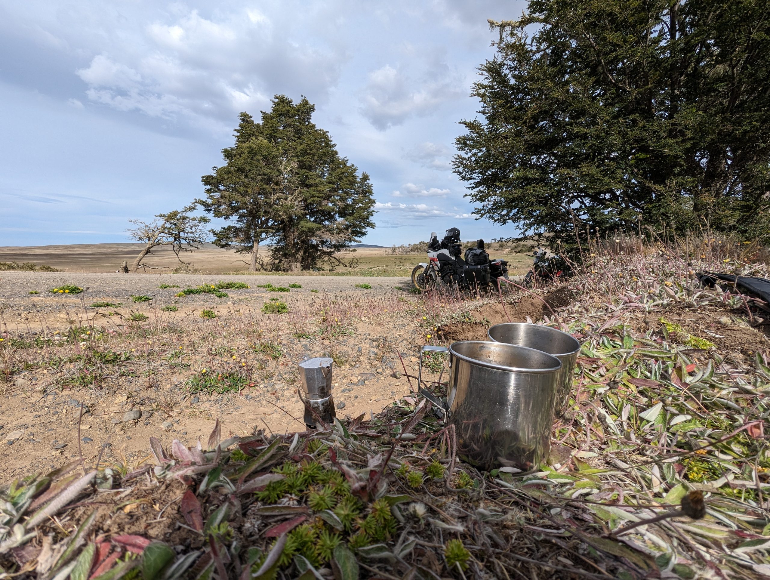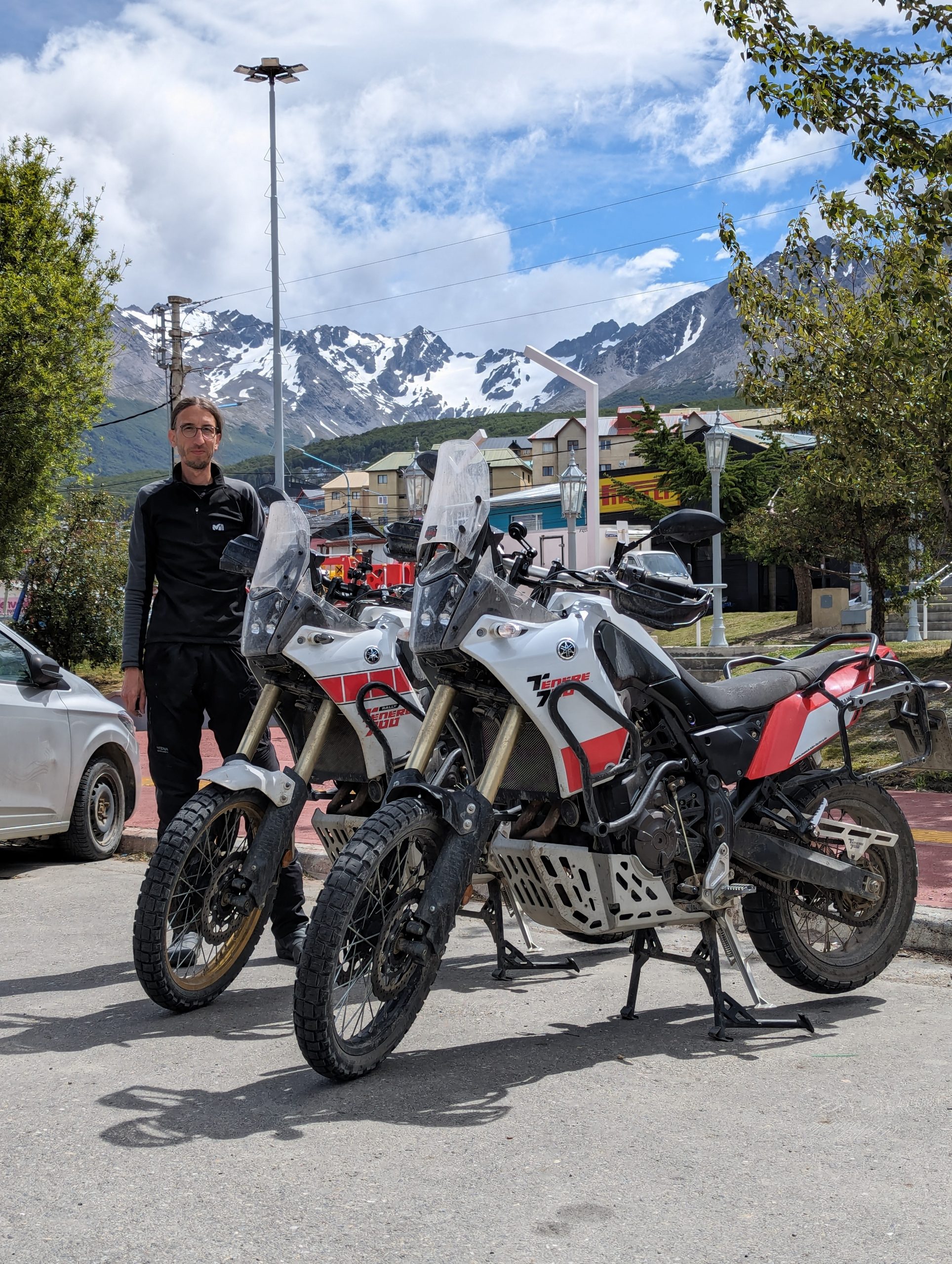 That left us with only another 100km down to Ushuaia which we reached at the 30th of December. We took it rather slow stopped for the landscape and for some coffee. A little mishap occured as well. At the coffee stop we parked the motorcycles really bad, so a wind gust tumbled them. The machines are fine, but the suitcases have some damage. We were able to fix them, but it is annoying as it was our fault and we did not pay enough attention to the wind, which on that day did not seem overly bad.