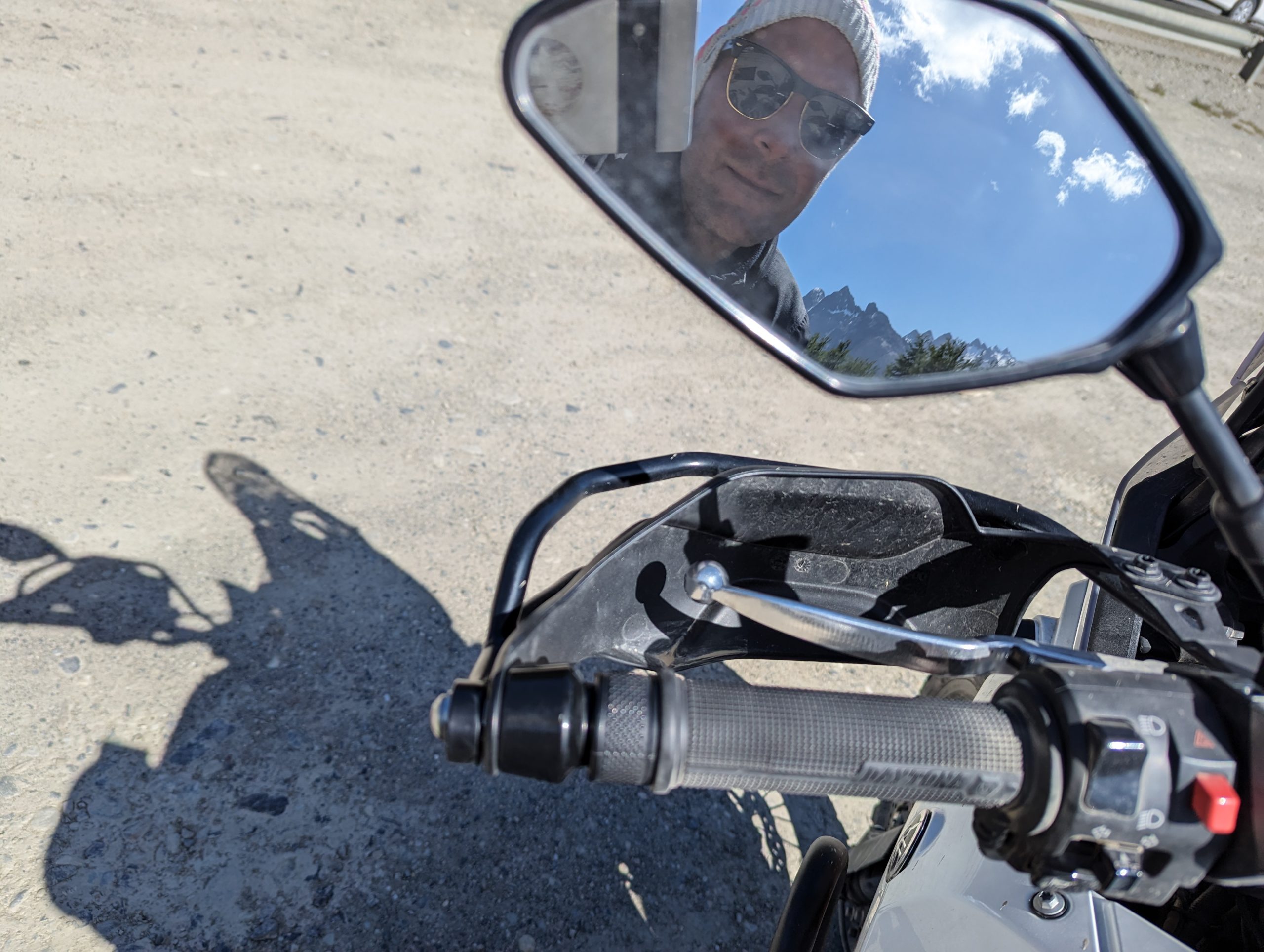 So the snail´s pace i am referring to, did not apply to our ride from Rio Gallegos to Rio Grande. Jumping the boarder two times Argentina – Chile and Chile – Argentina including a ferry ride we basically did 390 km in grueling winds. Fun thing though, you get used to it, and the upside is definitely the tailwinds, when you open your visor at about 90km/h and there is not even a slight breeze hitting your face. Headwinds are a totally different story, and most of the times the wind from the side. Had to cross to “sand storms”. The first one lasted for about 200m but visibility was at about 20m , second one was much smaller.